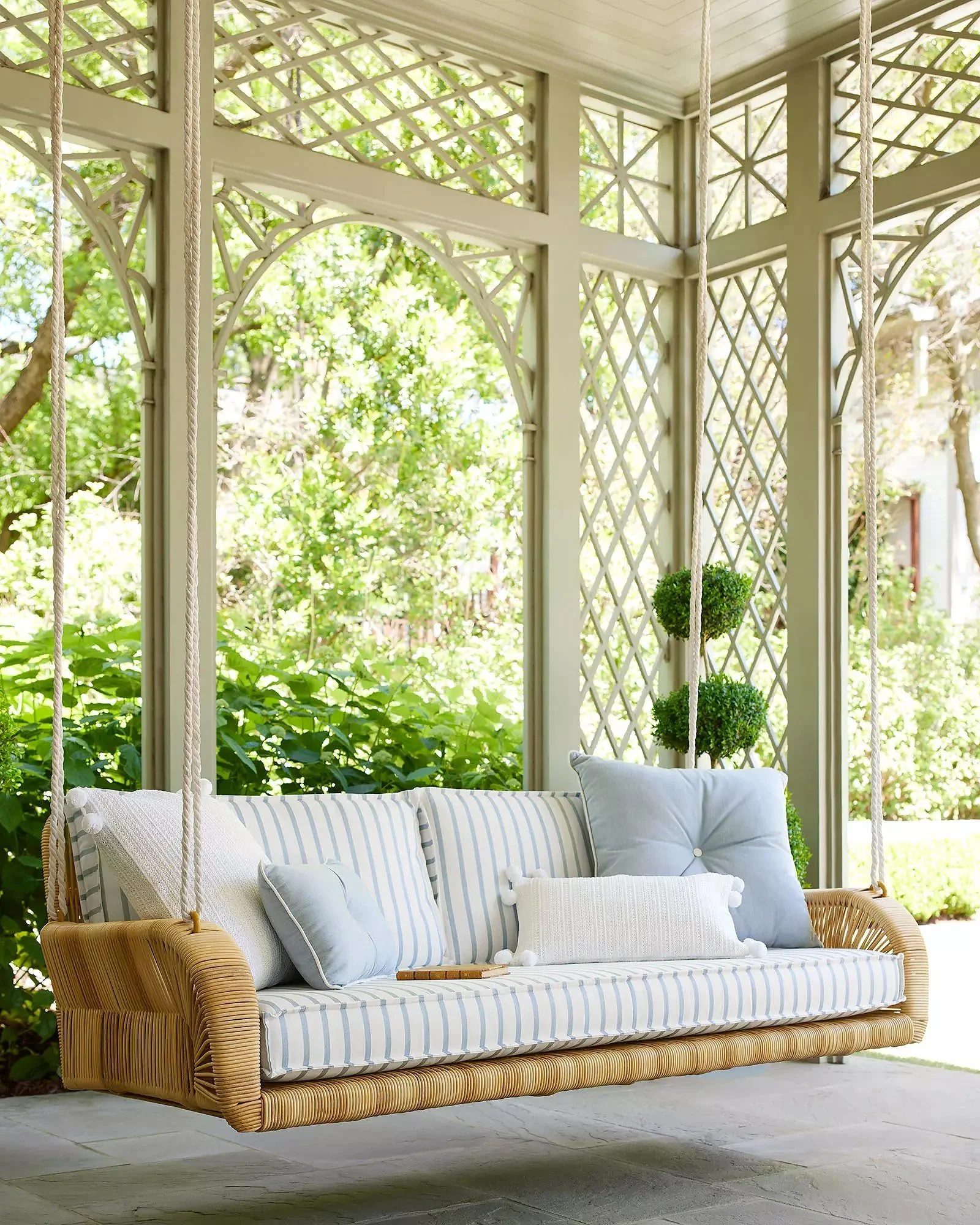 1. Serena & Lily Springwood Hanging Daybed in Lido Stripe Coastal Blue