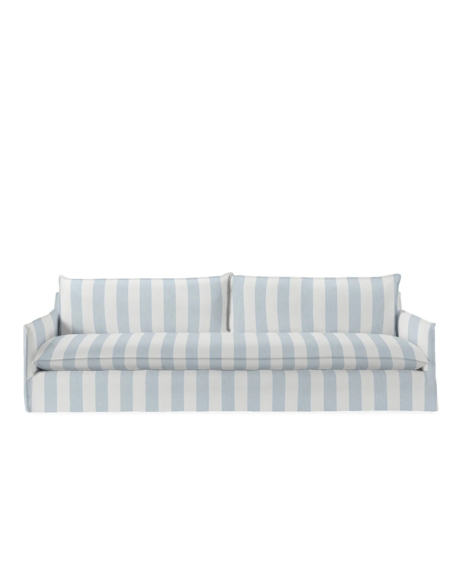 This luxury-depth sofa offers generous seating and plush comfort, perfect for outdoor entertaining. The slipcovered design in Coastal Blue Skipper Stripe adds a nautical touch, while the durable materials ensure it withstands the elements. Its timeless style and quality craftsmanship make it a standout piece for any coastal-inspired outdoor space.